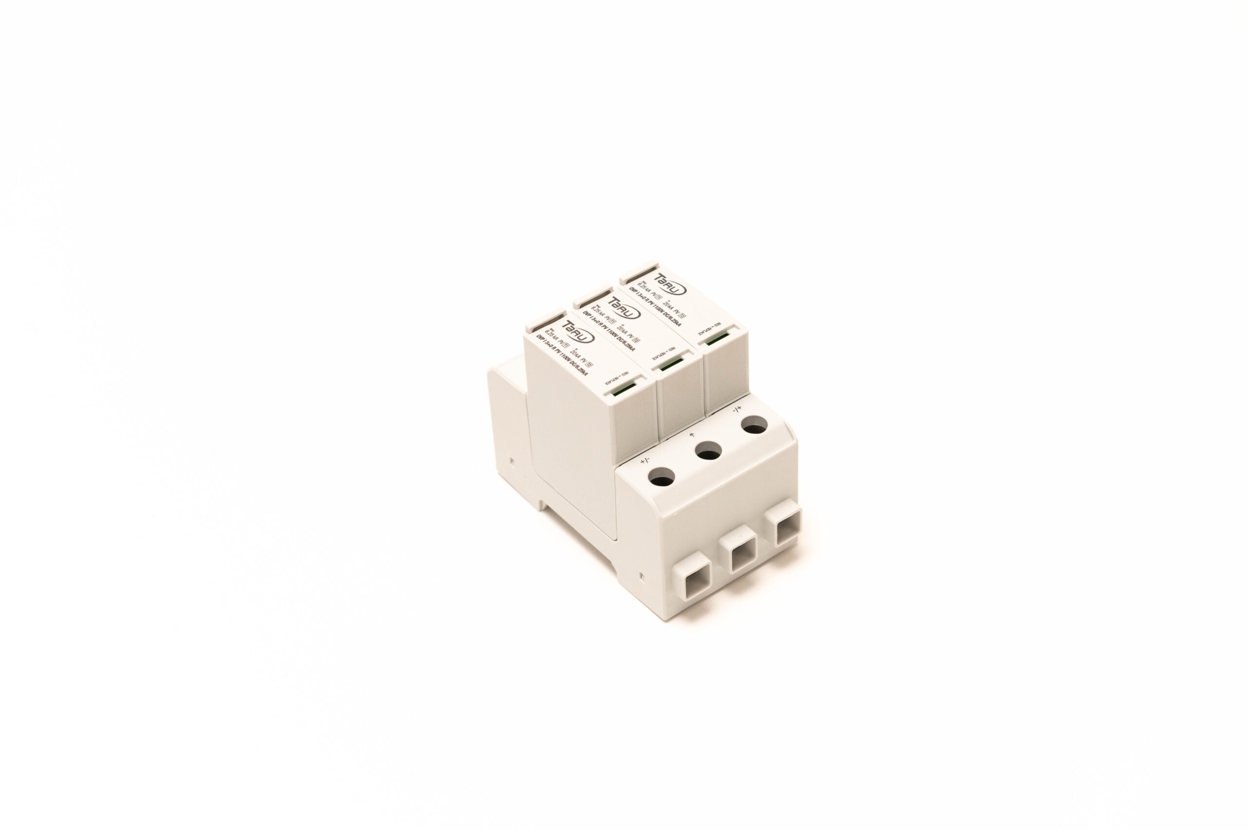 für 2-polige isolierte Gleichspannungssysteme bis 1100 V DC, bestehend aus steckbaren Ableitern und Basiselement für die Tragschienenmontage, optische Statusanzeige und Fernmeldekontakt zur Fehlersignalisierung, Abschaltung der einzelnen Schutzpfade im Fehlerfall.